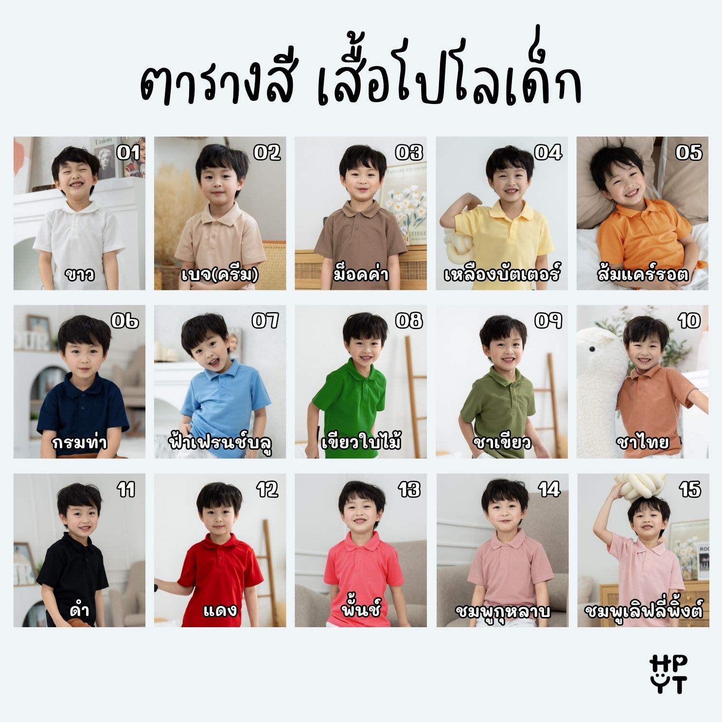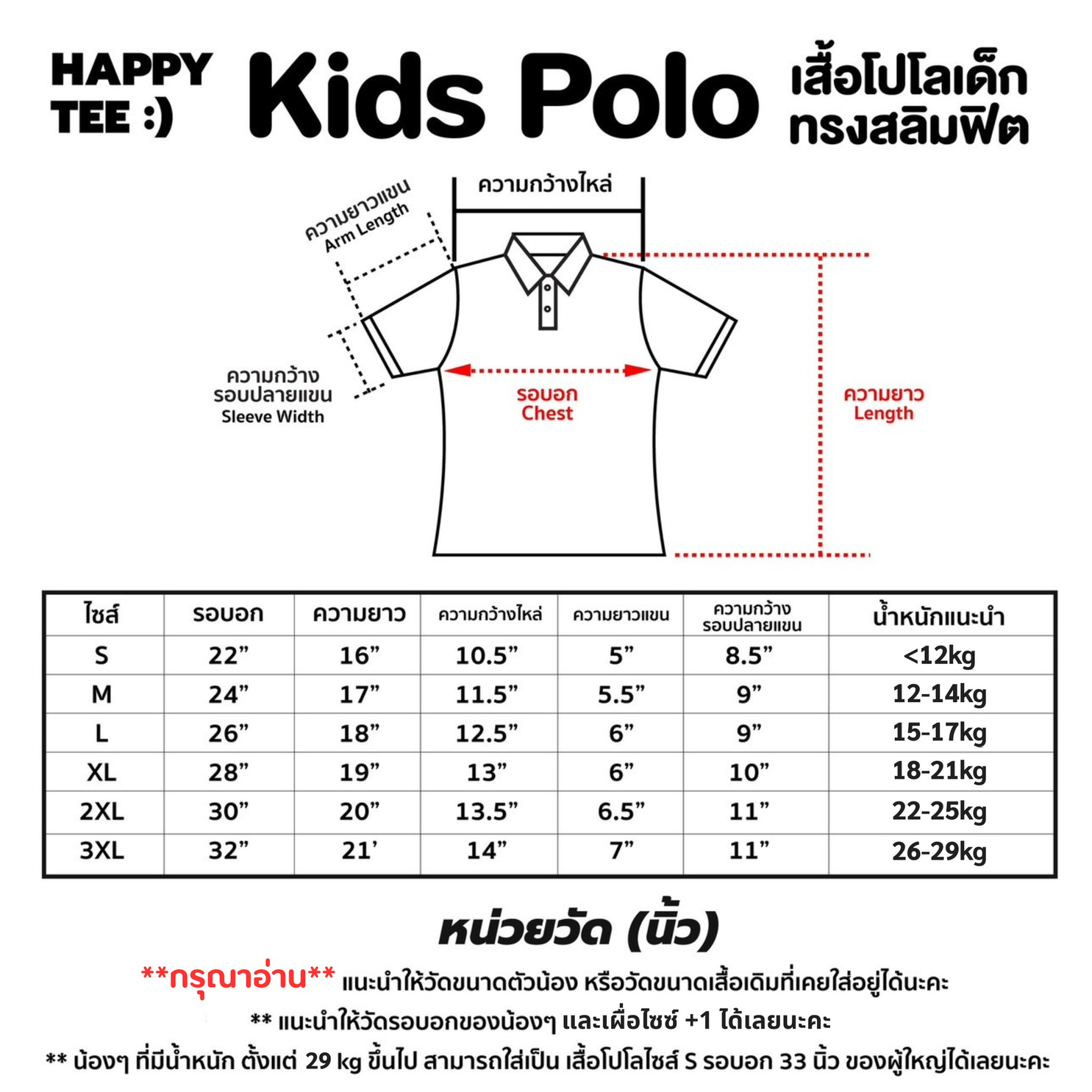 ใส่เสื้อโปโล HAPPY TEE KIDS POLO ไซซ์ L รอบอก 26" ยาว 18"