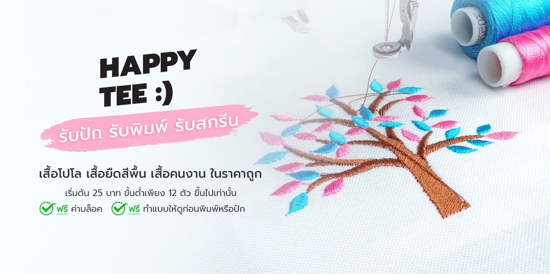 แอดไลน์ @happytee เพื่อติดต่อแอดมินแจ้งรูปแบบ สี และจำนวนเสื้อที่ต้องการสั่งปัก (ขั้นต่ำ 6 ตัว)